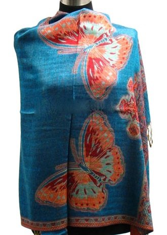 @@@ 68" x 27" Reversible Big Butterflies Pashmina Shawl / Wrap / Stole - Turquoise blue - - Review by Aiden