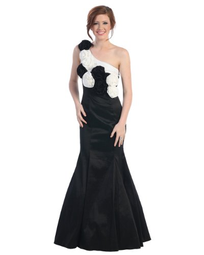 Buy Now! Juniors Black One Shoulder Corsage Accented Satin Long Evening Dress